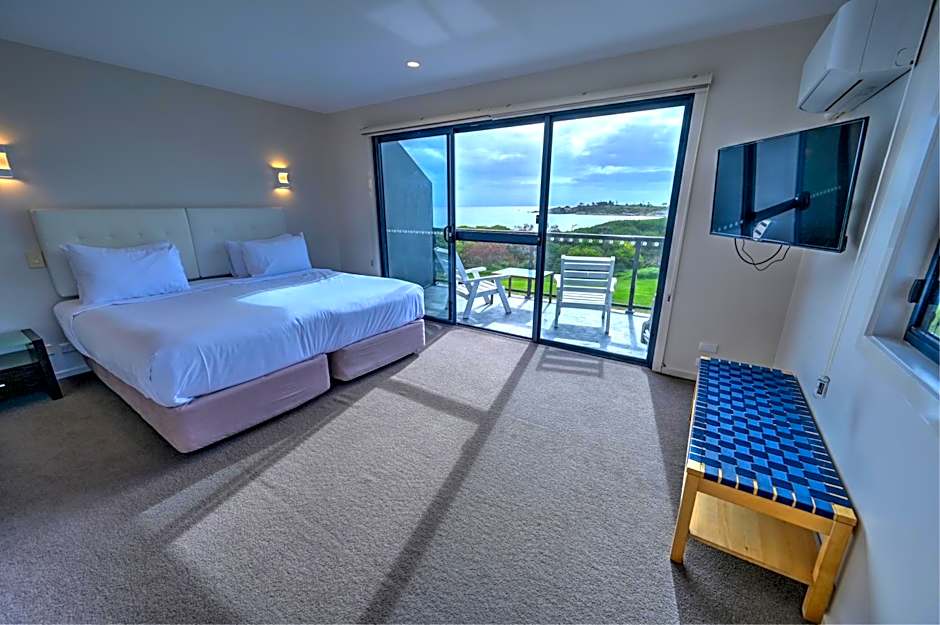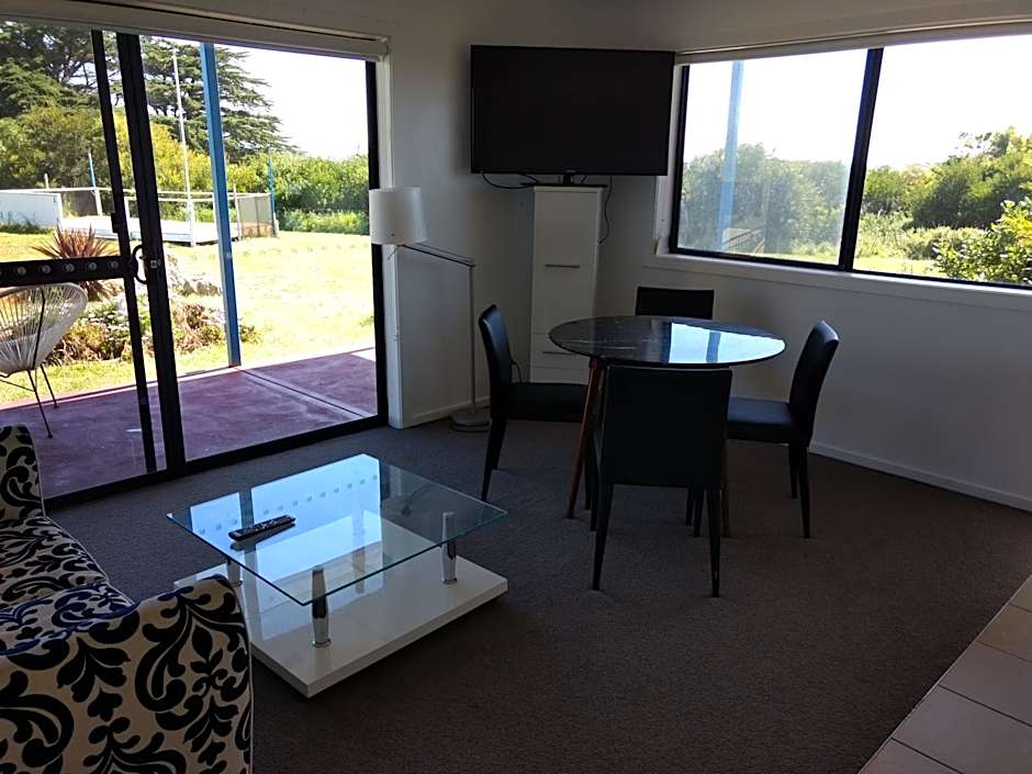 This apartment features a garden with ocean views. It has a kitchenette with a microwave and a ceramic glass stove top.